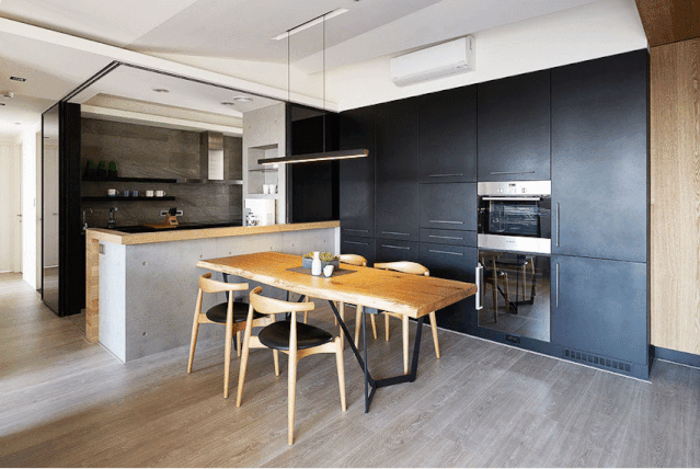 可以因地制宜地將西廚房設置在客廳、餐廳甚至是吧臺,只要是其他有空余位置的就可以。