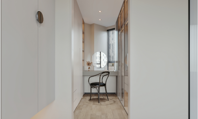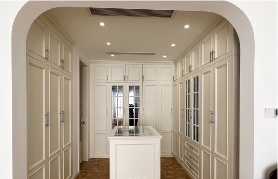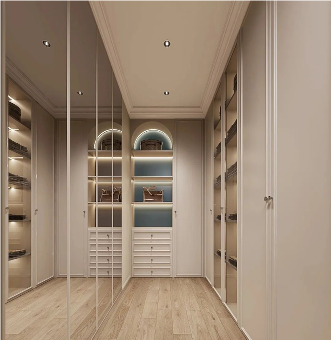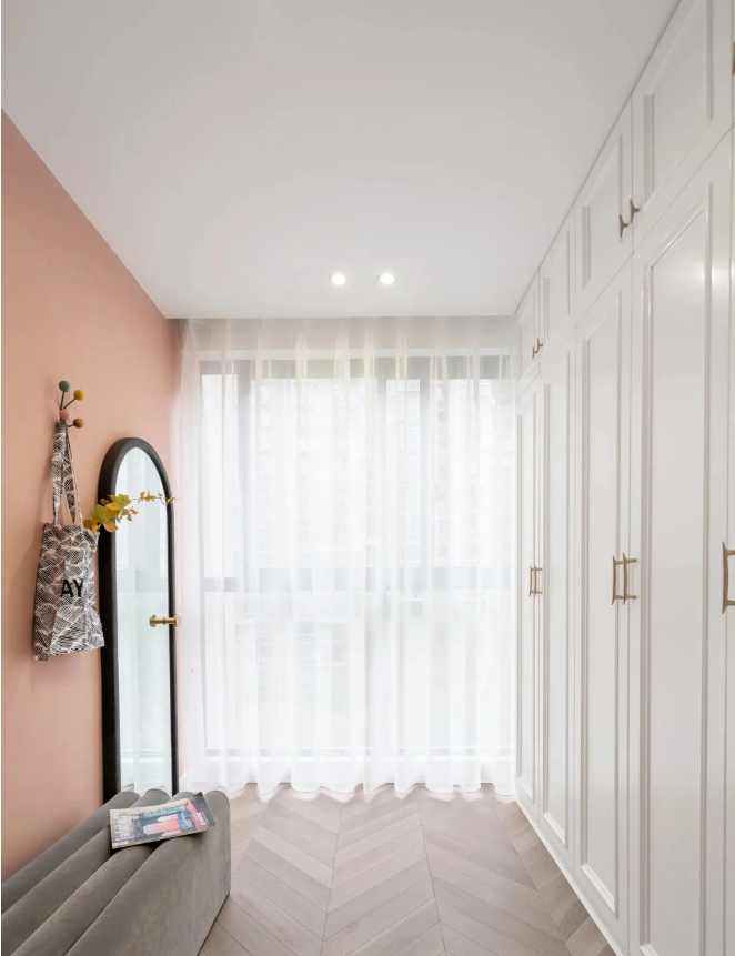 ●空間足夠的話,衣帽間可以和梳妝臺一起定制,這樣會更節(jié)省空間,功能也會更多。●衣柜要規(guī)劃多個功能區(qū):掛衣區(qū)、疊放區(qū)、過季衣服區(qū)、次凈衣區(qū)等。●掛衣區(qū)高度在90-150cm,衣柜整體深度在55-60cm上下體驗最舒適!袢绻黾有,記得柜體做好通風。