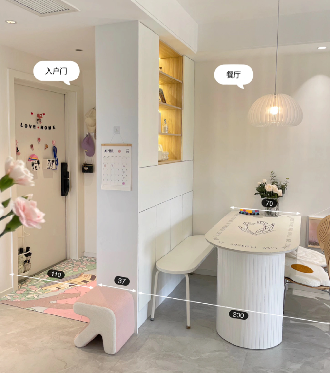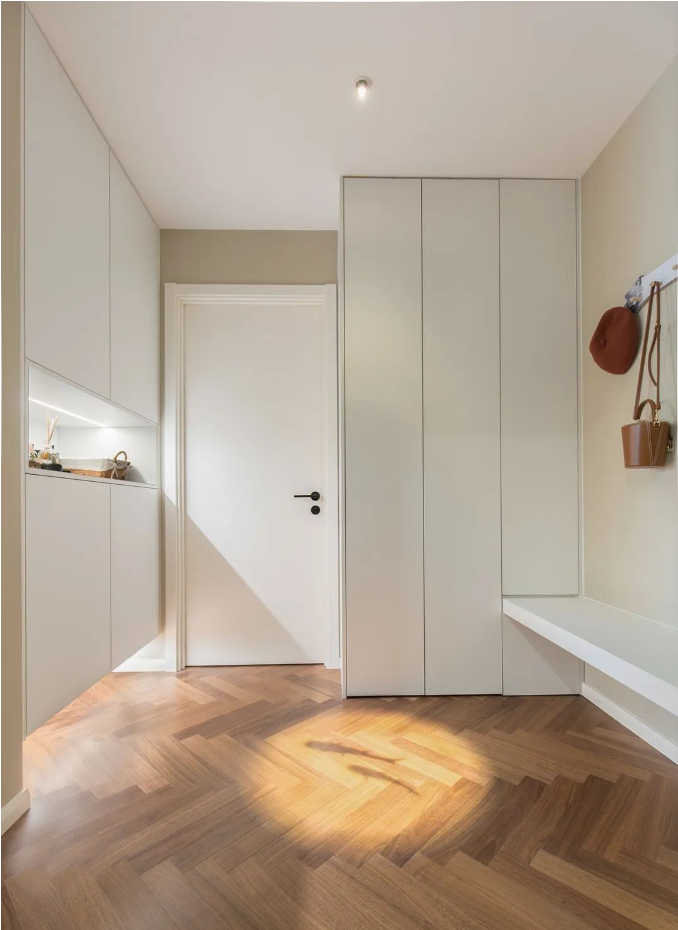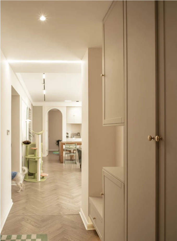 4、獨(dú)立式玄關(guān):對于沒有自然形成玄關(guān)的戶型,可以通過設(shè)計(jì)一個(gè)獨(dú)立的玄關(guān)區(qū)域來實(shí)現(xiàn)空間的劃分和收納功能的擴(kuò)展。