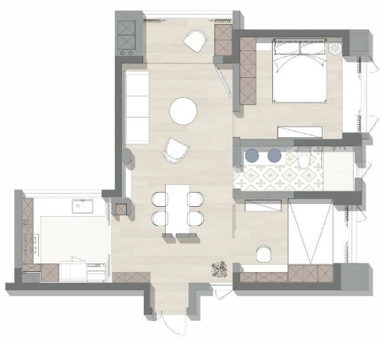 改變主臥動線,衛(wèi)生間外移,擴大操作空間。
