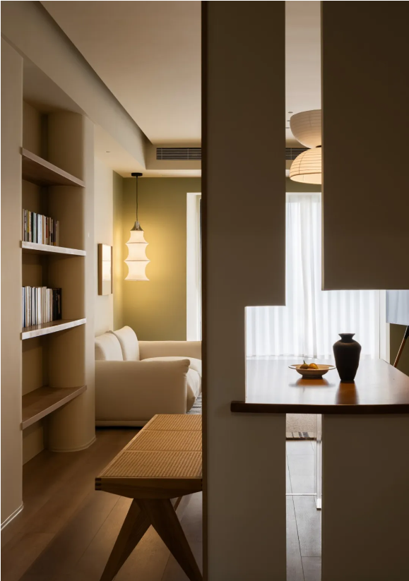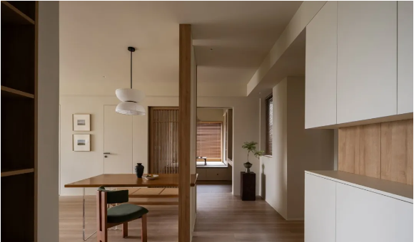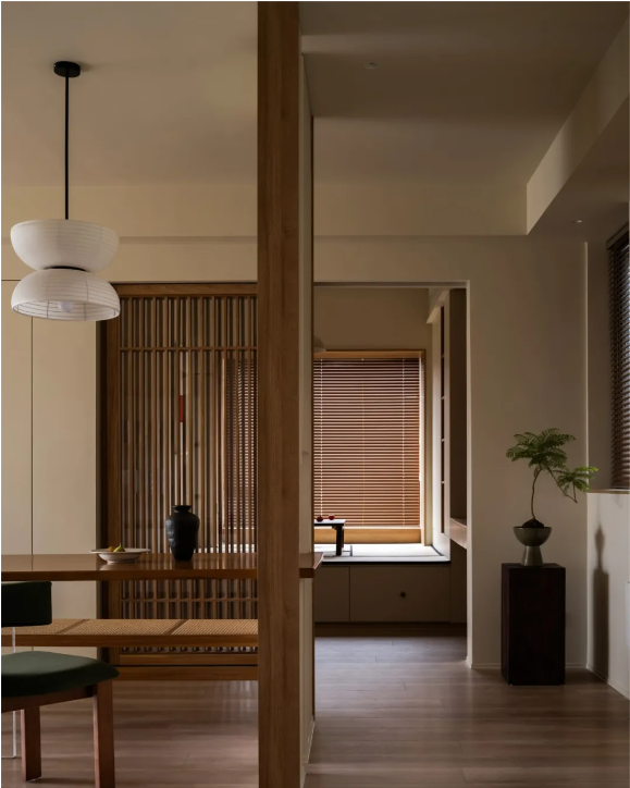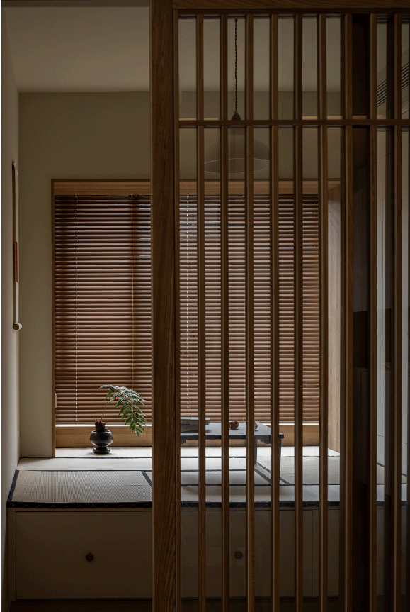 木柵推拉門可開可合,內(nèi)外功能隨之互聯(lián),開闊透亮之余,最大化放大空間視覺。