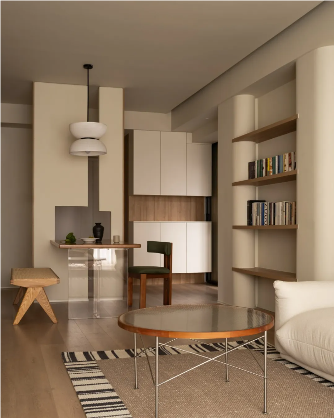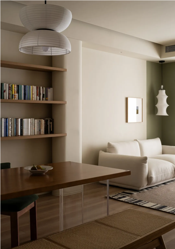穿插的墻體連接餐桌一體成為視覺中軸線將空間對稱分布,儀式感十足。
