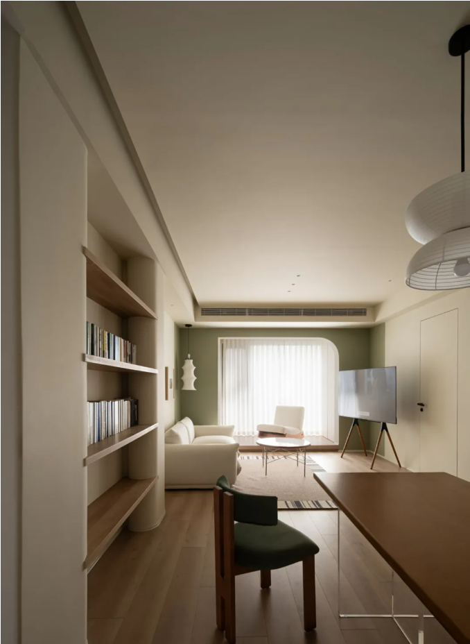景觀陽臺擴大室內(nèi)面積的同時,落地窗將豐富的采光引入,為客廳空間創(chuàng)造出多元的生活使用場景。